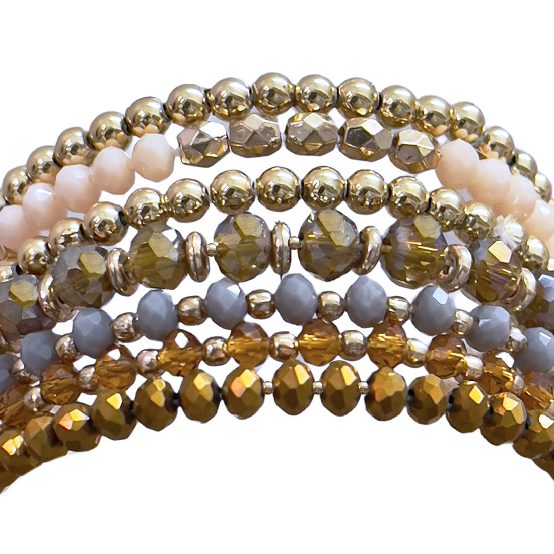 Be the first to review “Beaded Gold, Mustard, Grey & Beige Multilayered Elastic Boho Bracelet”